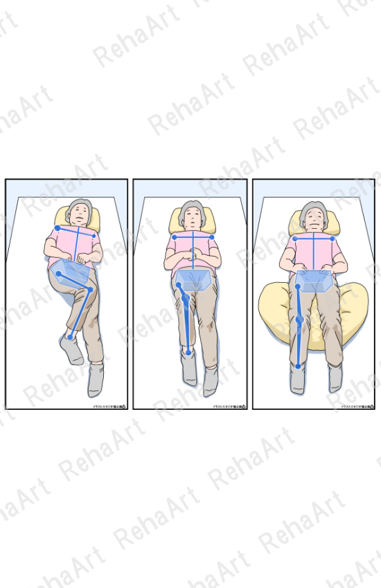 ●ベッドポジショニング(アライメント):胸郭・骨盤・下肢の位置関係の表したイラスト