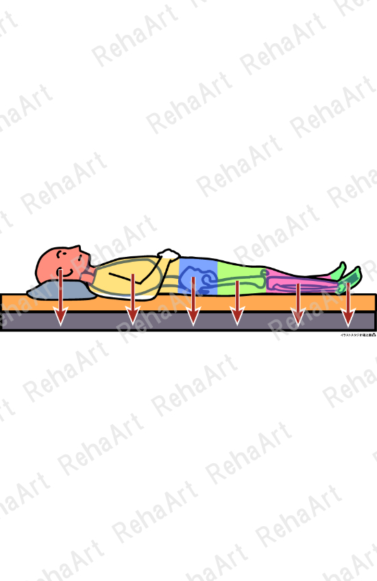 ●ベッドポジショニング(体節重心):各体節の重心位置のイメージ