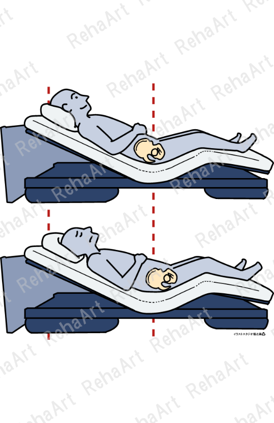 ●ベッドポジショニング(骨盤位置):ギャッジアップ時の骨盤位置の違いによる影響
