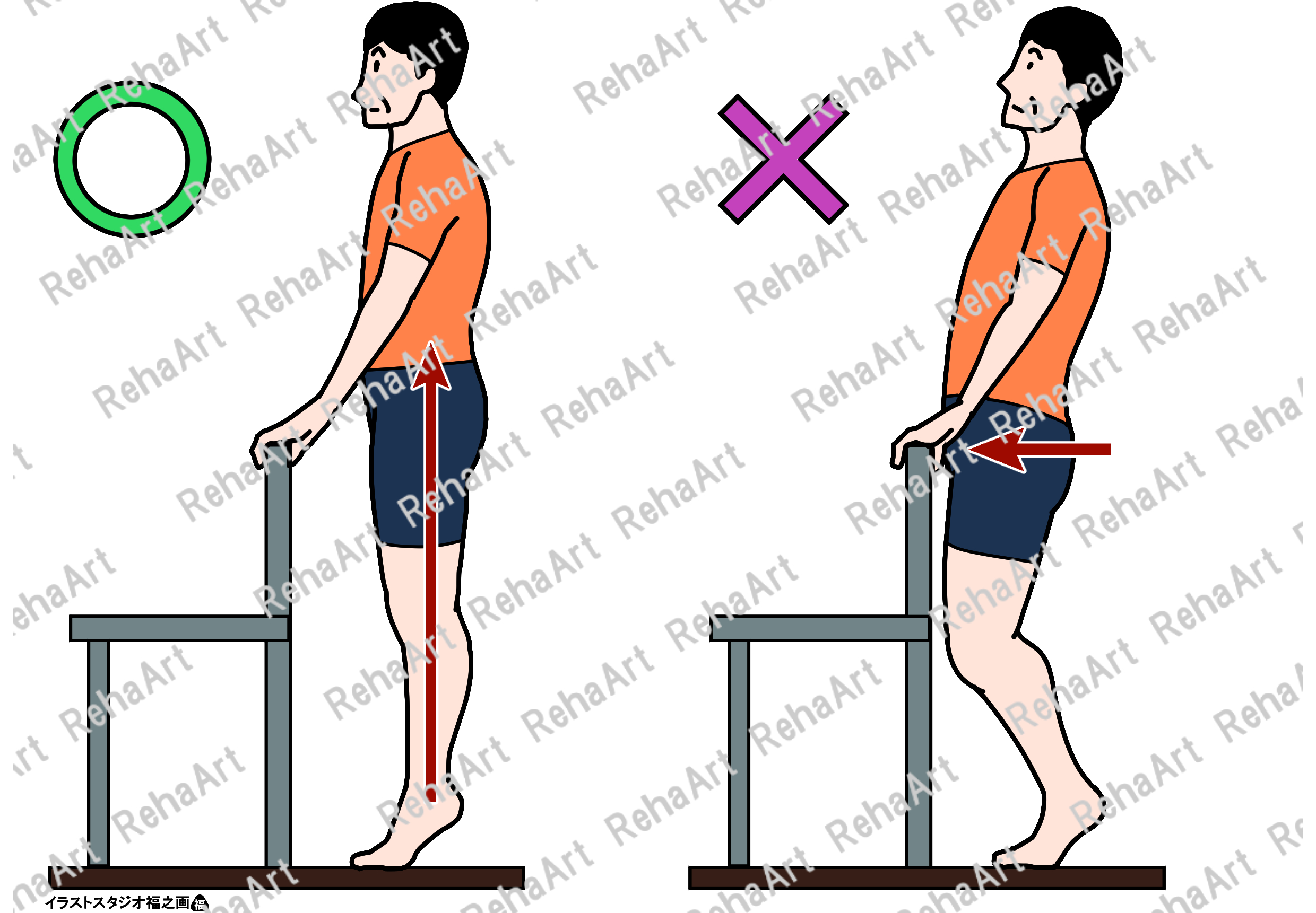 左 適切なカーフレイズ 右 不適切なカーフレイズ