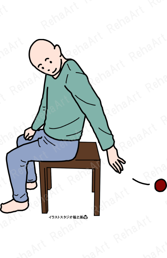 ●後方リーチ動作練習(課題動作):骨盤後傾位を保持しながらボールを投げる等の課題動作を行う練習方法。
