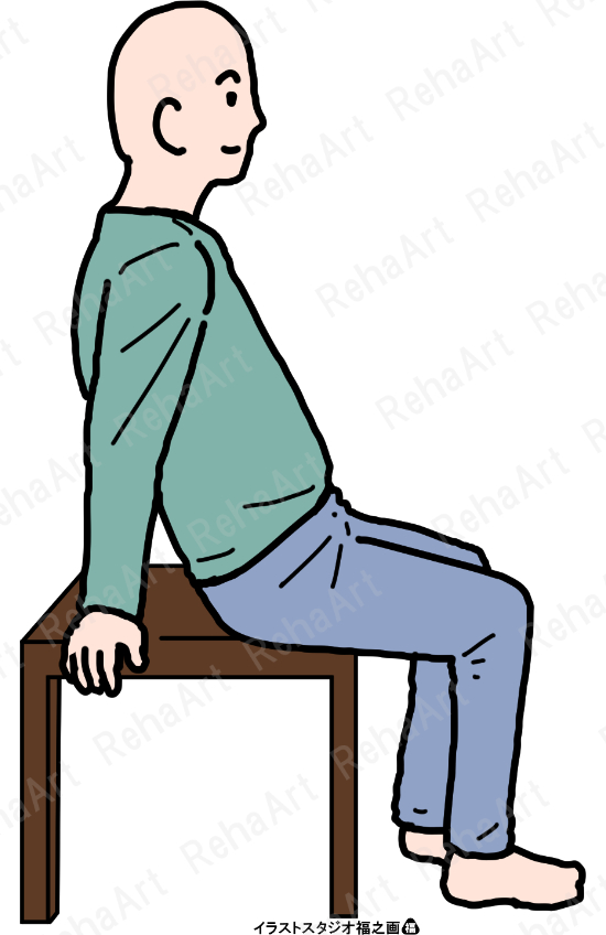 ●後方リーチ動作練習(骨盤後傾位保持):後方リーチに必要な骨盤後傾位で姿勢を保持する練習方法。