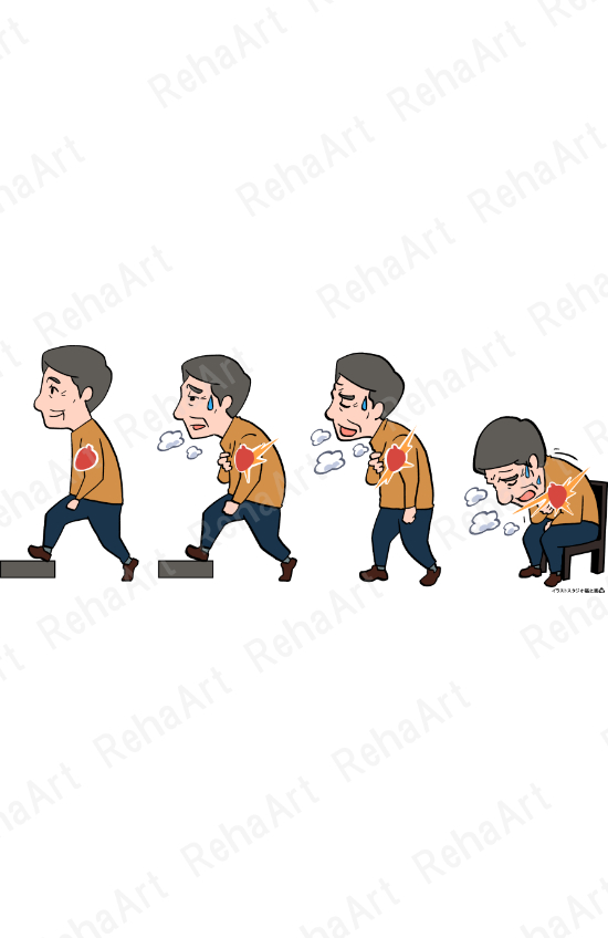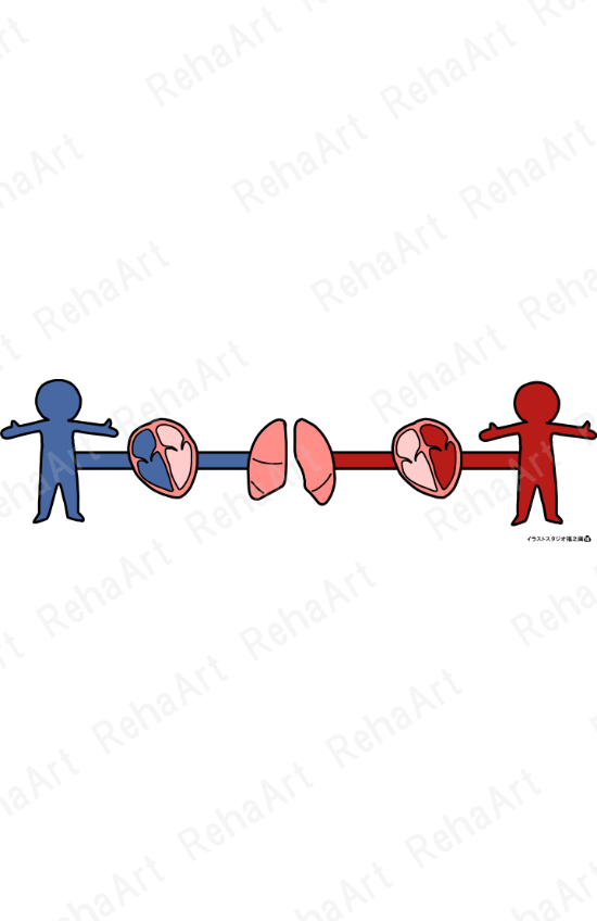 NYHA分類に使えるイラストや内臓循環・頸静脈・頸静脈怒張などのイラストです。