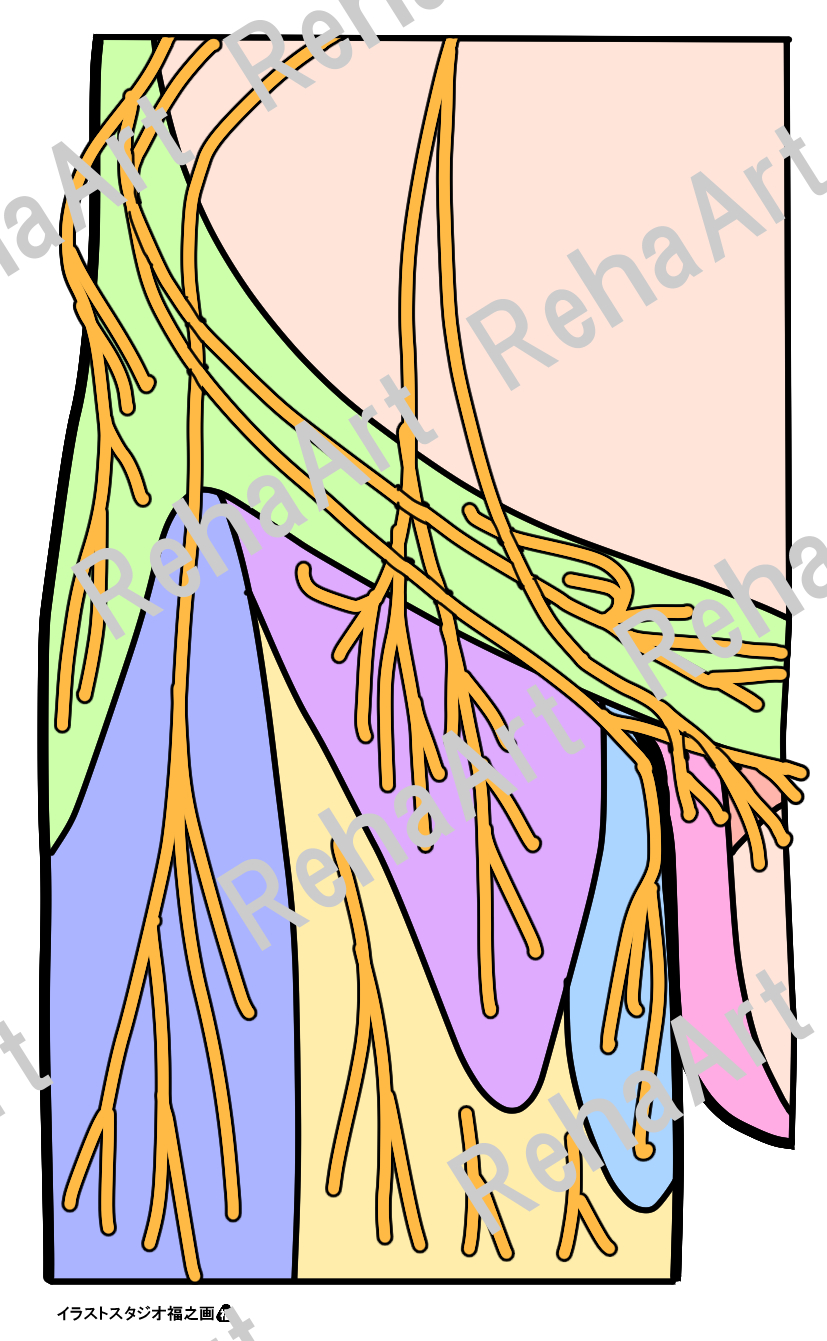 ・皮神経(臀部):上殿皮神経・中殿皮神経・下殿皮神経・腸骨下腹神経