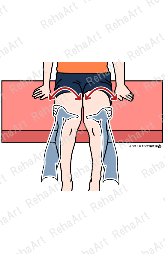 ・Paceテスト:座位にて、検者の両側股関節内転・内旋運動へ抗した際に、筋力低下・疼痛の有無を評価する