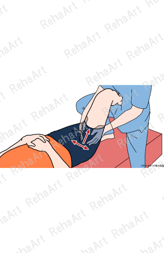 ●恥骨筋(柔軟性・筋収縮ハンドリング):恥骨筋の走行に合わせた全可動域へのハンドリング操作
