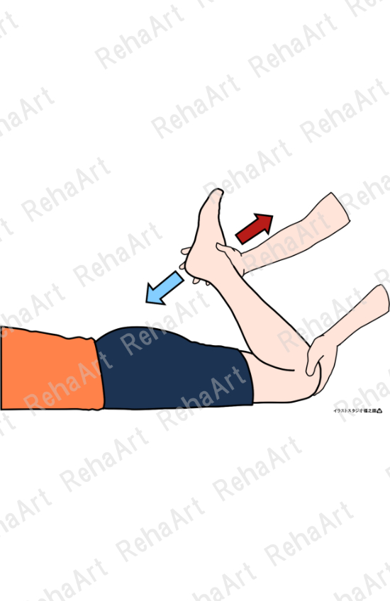 ●大腿直筋(柔軟性・筋収縮ハンドリング):大腿直筋のストレッチング・収縮の反復運動