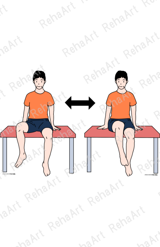●股関節内外転トレーニング(座位):座位にて股関節屈曲位を維持した股関節内外転運動