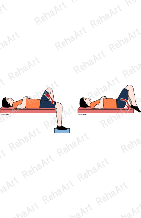 ●腸腰筋トレーニング(背臥位):下腿を降ろした背臥位にて股関節屈曲・伸展運動