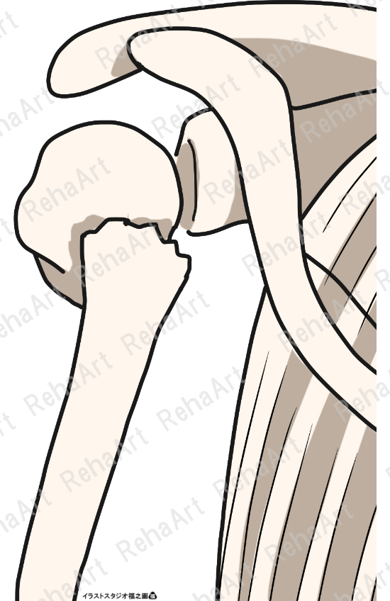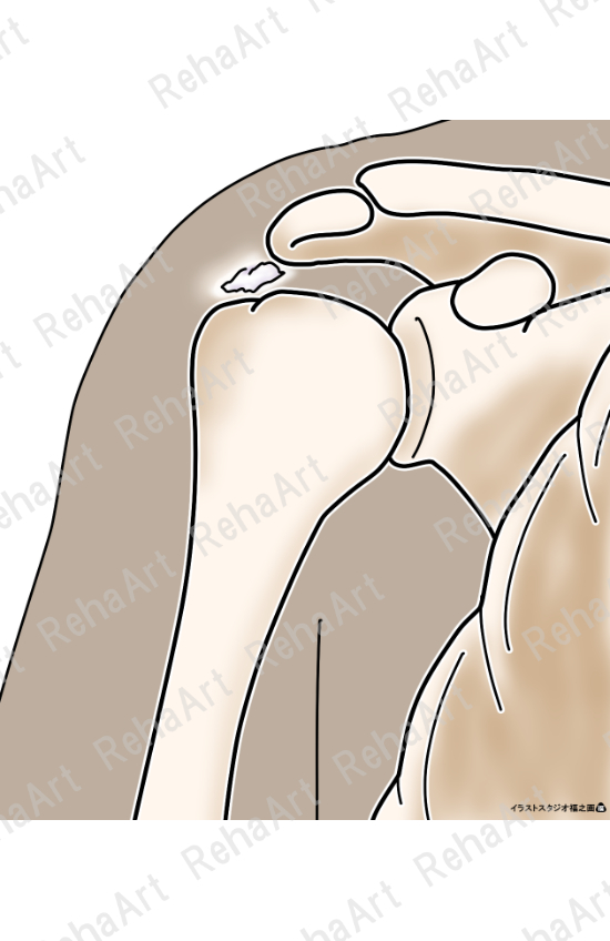 腱板に見られる石灰所見や骨折・脱臼等のイラストです。