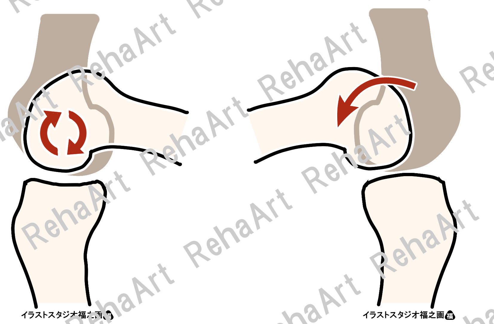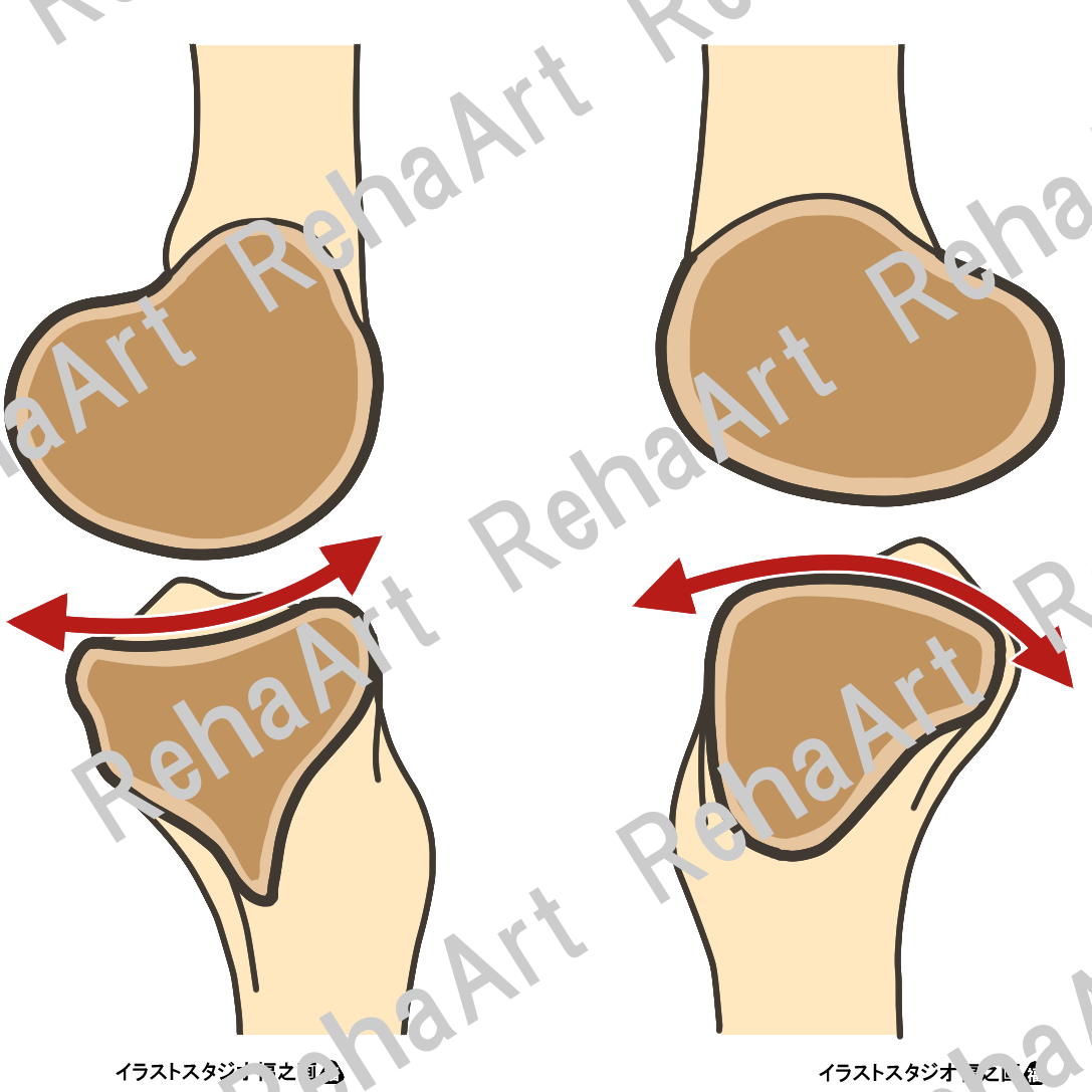 • 脛骨内側凹面上の滑り運動と脛骨外側凸面上の転がり運動