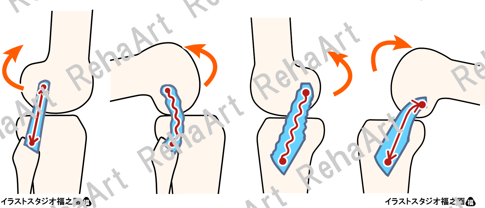 内側側副靭帯と外側側副靭帯の屈曲に伴う緊張の違い