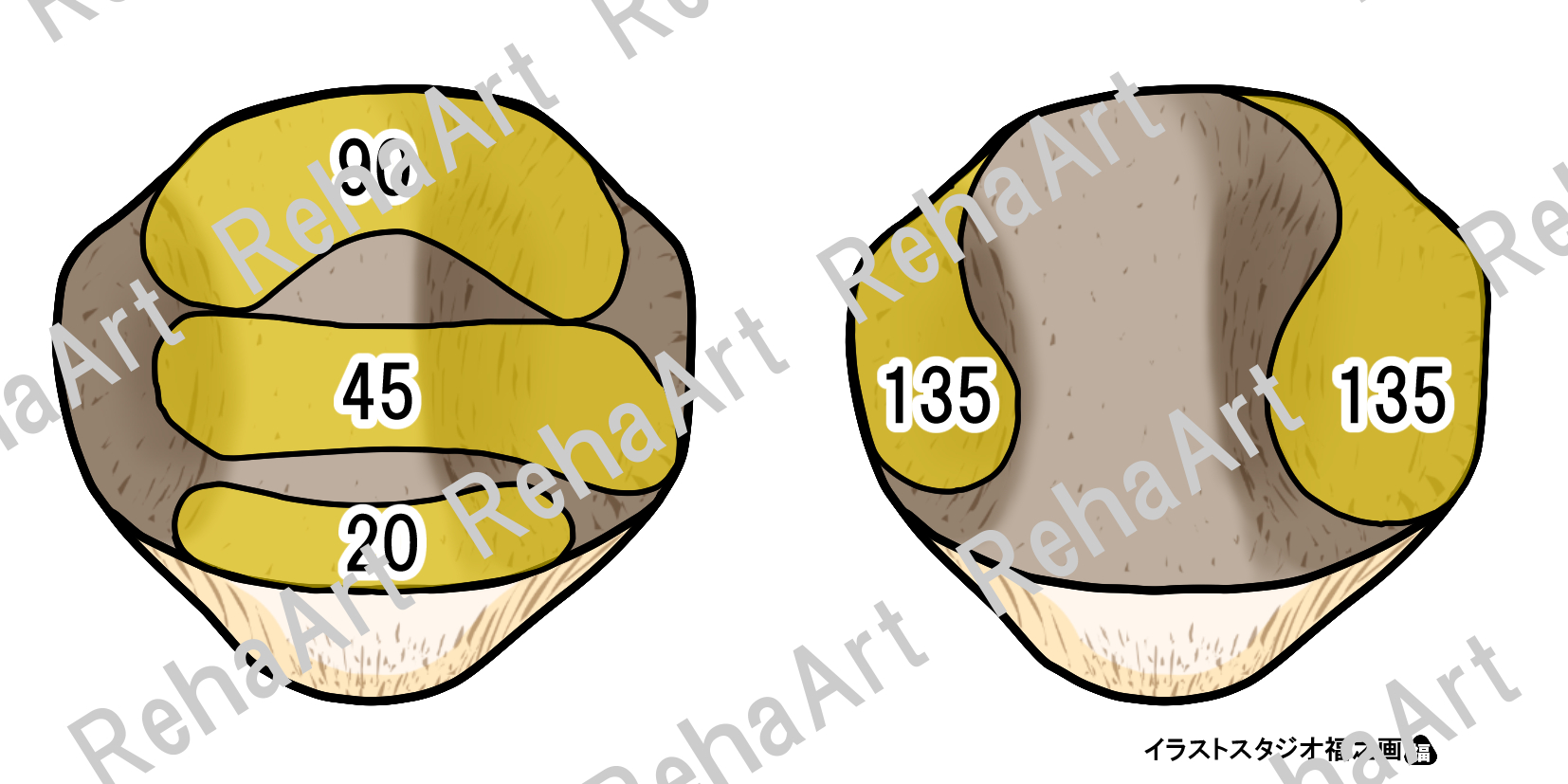 膝蓋骨関節面の大腿骨との接地面