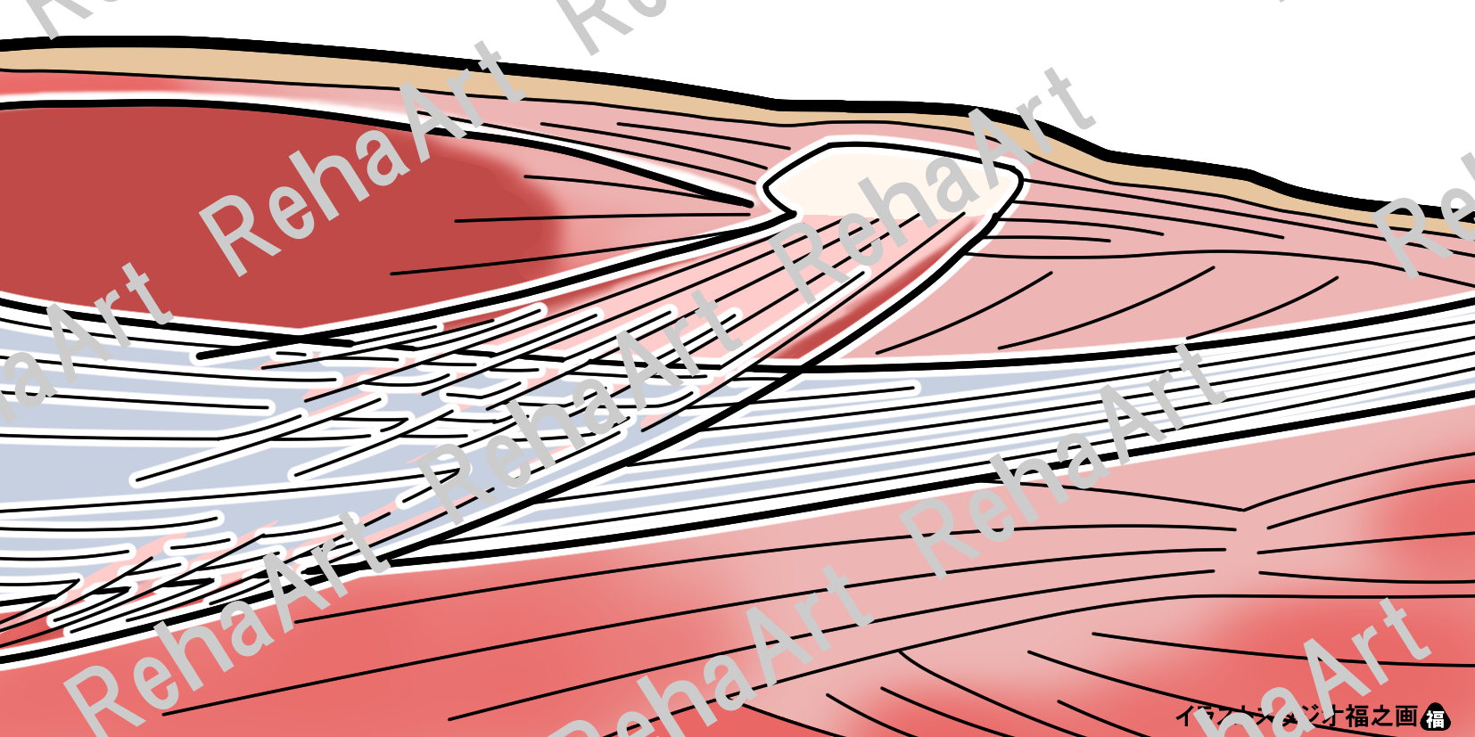 ・腸脛靭帯:腸脛靭帯と外側広筋斜走線維の結合を表現