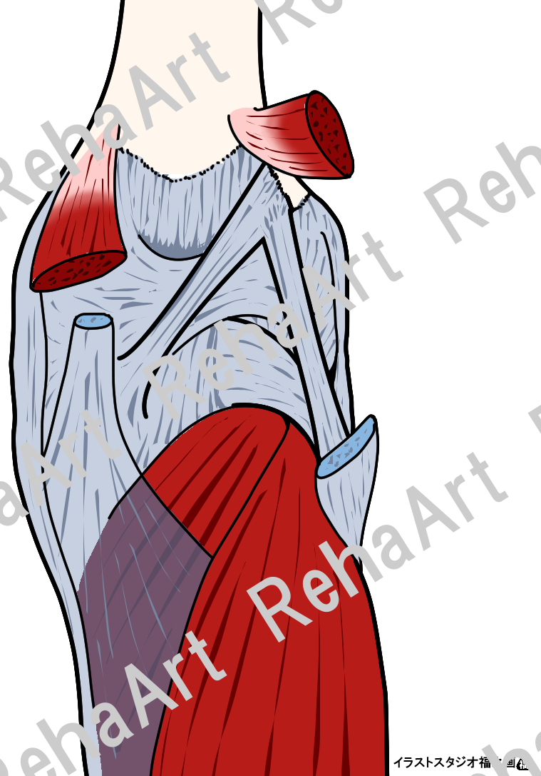 ・腸脛靭帯(結合:外側膝蓋支帯):腸脛靭帯が外側膝蓋支帯と結合していることを表現