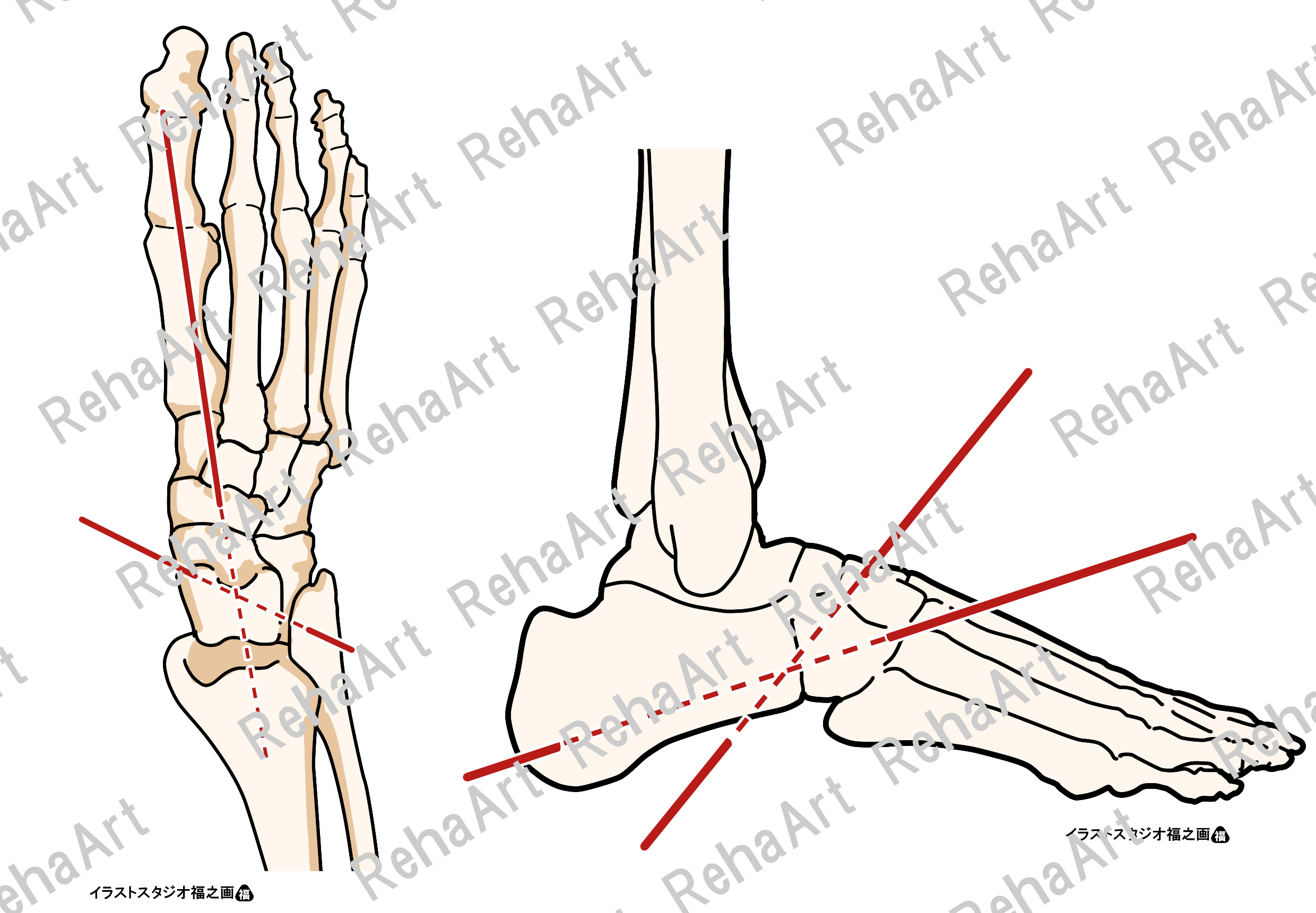 足部②:距腿関節・距骨下関節・横足根関節の運動軸(5点セット)