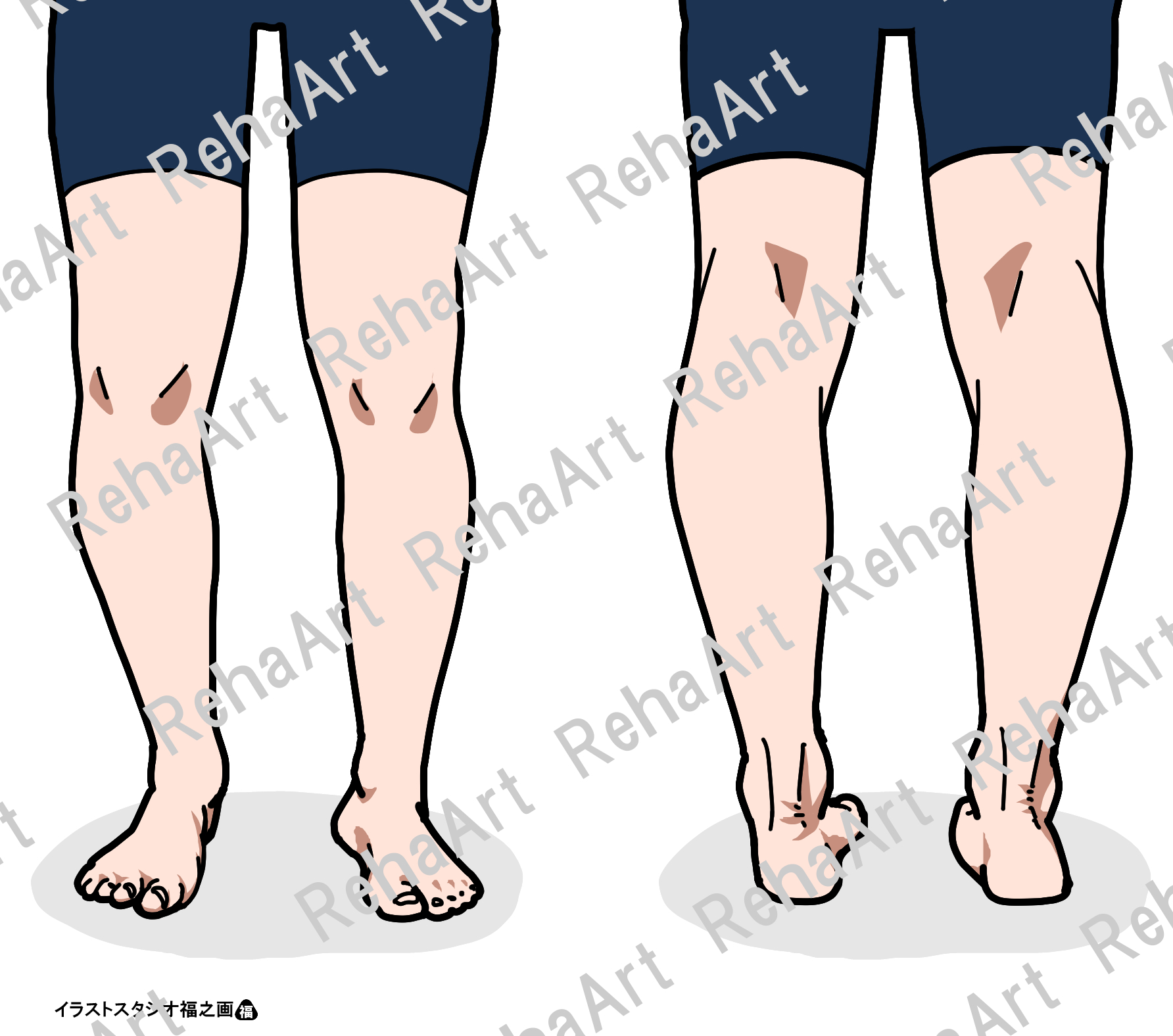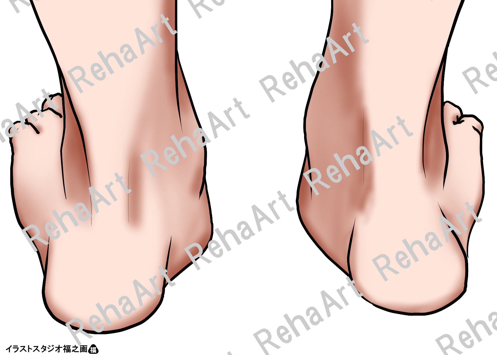 ・Too-many-toes sign:距骨下関節の回内の程度を判断する評価方法であり、後方から足趾(第3.4.5趾)が観察できる場合は過回内位と判断される。