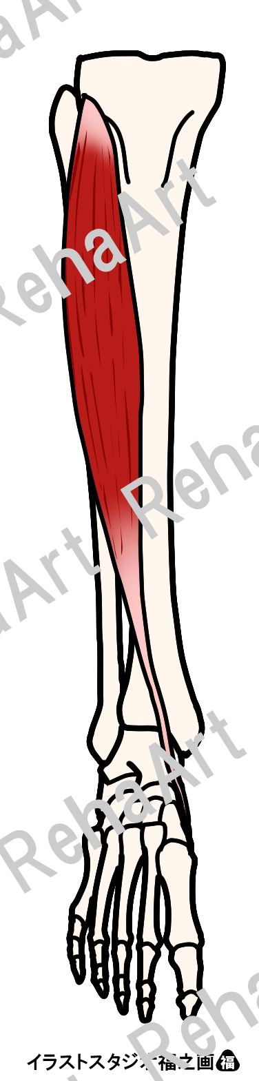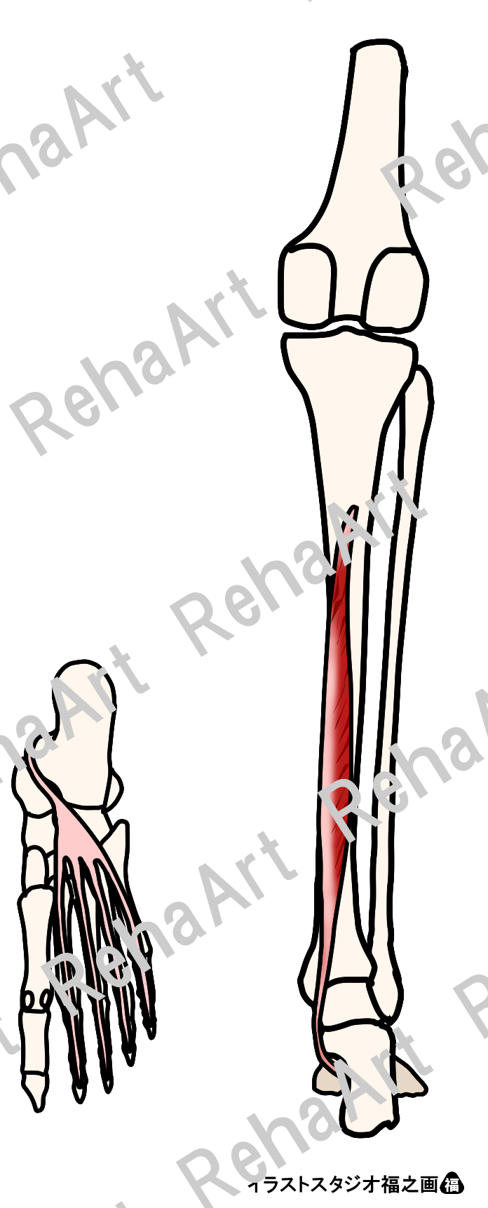 足部の距腿関節背屈に作用する前脛骨筋と、足趾伸筋屈筋のイラストです。