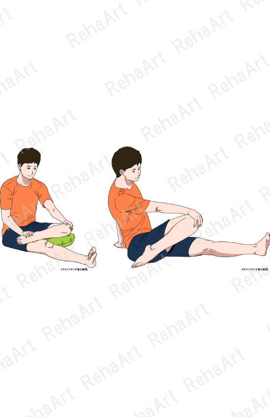●前脛骨筋ストレッチング(座位):床座位でできる外がえし・底屈へのストレッチング