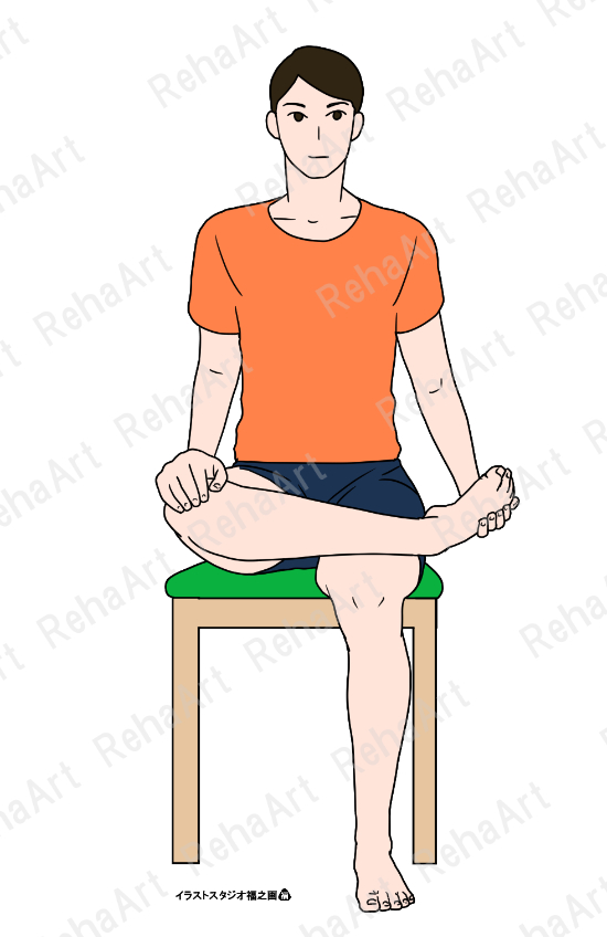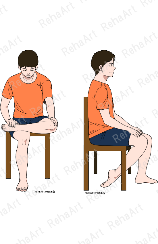 ●腓骨筋ストレッチング(椅子座位):椅子座位でできる内がえし・内転へのストレッチング