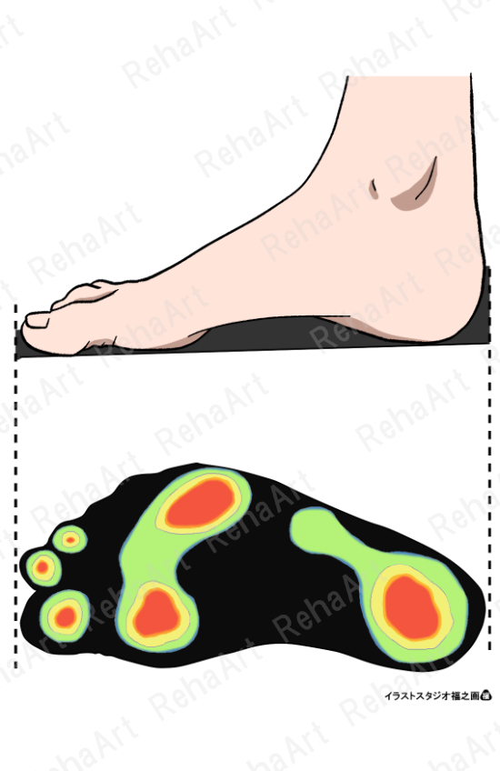●ハイアーチ足底圧:ハイアーチにより接地面が狭小化し、接地部分の足底圧が集中している様子