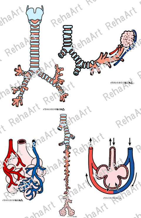 呼吸器①:気管と気管支、肺胞とガス交換(5点セット)