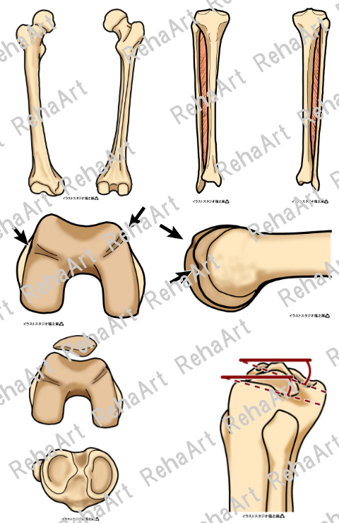 膝関節①:大腿骨・脛骨・腓骨と関節面(5点セット)
