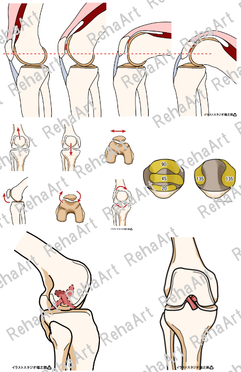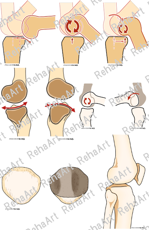 膝関節②:膝蓋骨、脛骨関節面の凹凸、転がり・滑り(5点セット)
