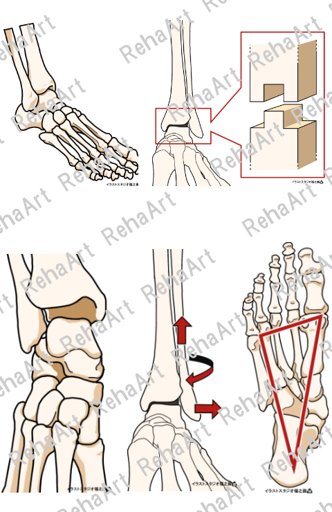 足部②:距腿関節・距骨下関節・横足根関節の運動軸(5点セット)