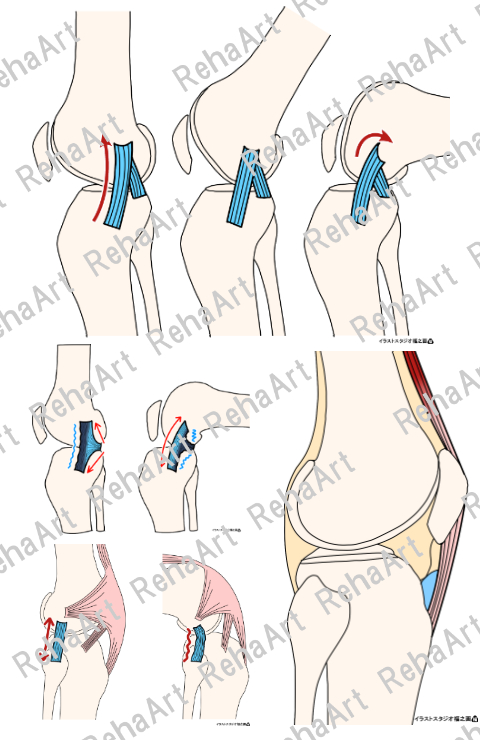 膝関節⑦:膝蓋支帯・膝蓋大腿靭帯・膝蓋脛骨靭帯・腸脛靭帯(5点セット)