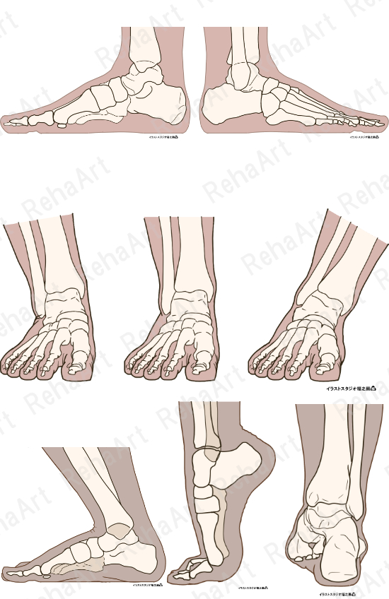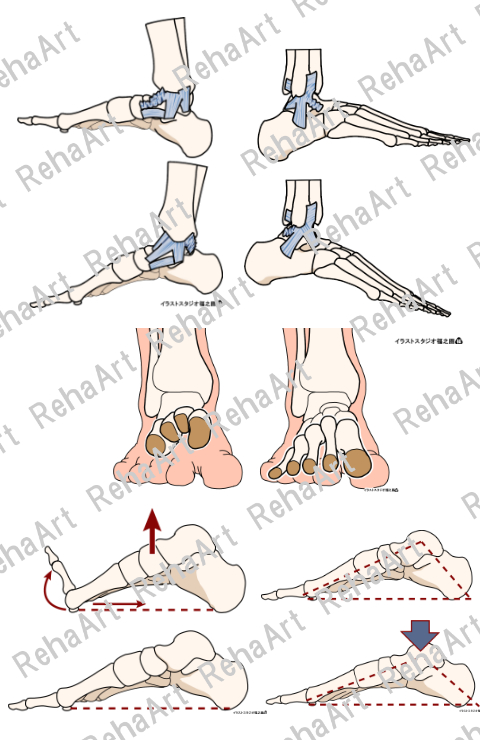足部13:足部解剖図・底屈背屈等(5点セット)