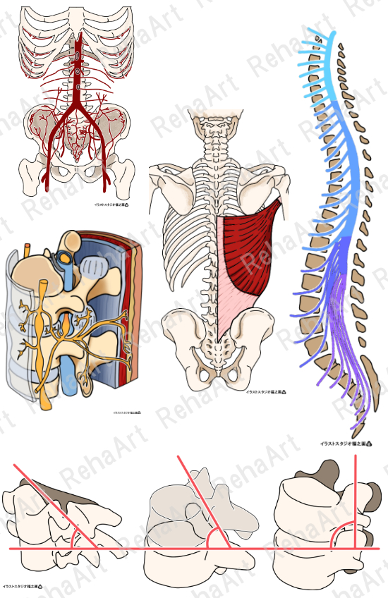 腰部⑥:広背筋・脊髄神経・腰部血管等(5点セット)