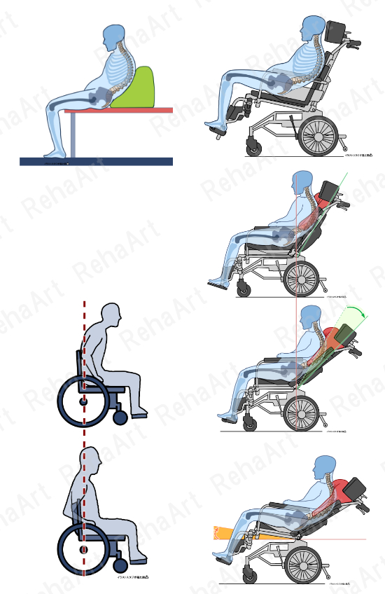 シーティング④ティルト・リクライニング車いす角度調整機能等(5点セット)