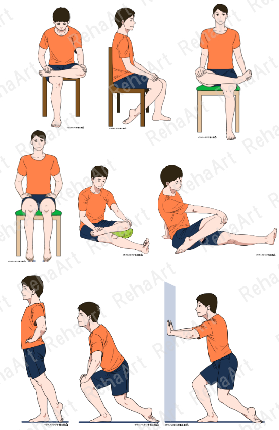 股関節㉑:股関節周囲筋トレーニング・ストレッチング(5点セット)