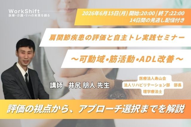 肩関節疾患の評価と自主トレ実践セミナー 〜可動域・筋活動・ADL改善〜(14日間の見逃し配信付き)