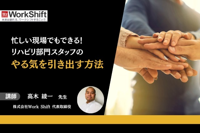 今回のセミナーでは、 「忙しい現場でもできる!リハビリ部門スタッフのやる気を引き出す方法」 をお伝えします。