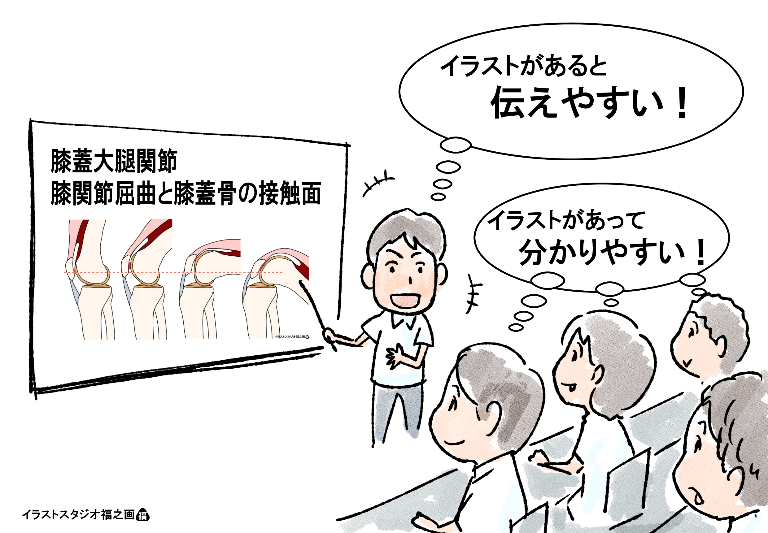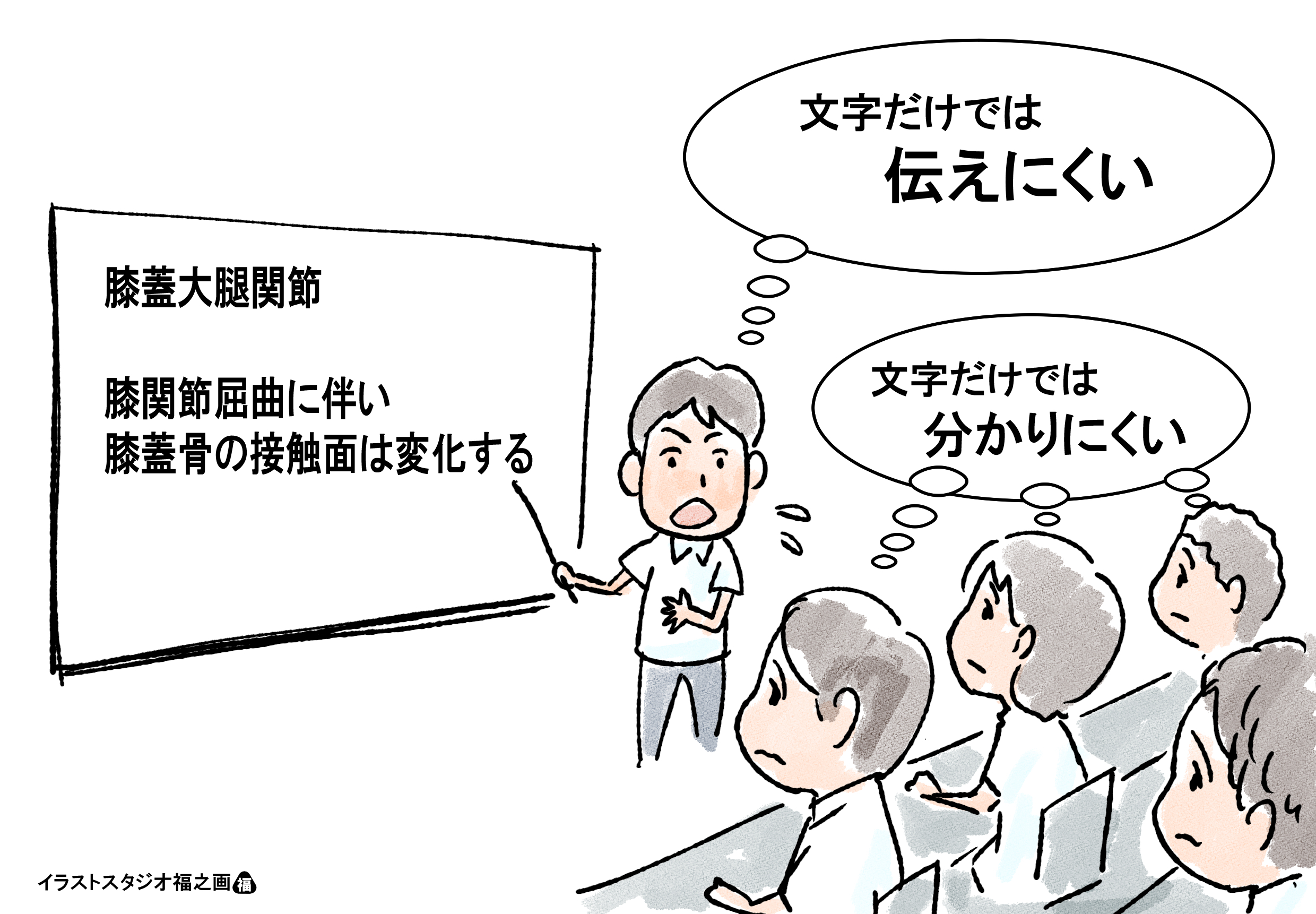 ただ、研修会資料の作成には、多くの時間・労力、そして、必要に応じた費用が発生します。そして内容は、医療・介護・リハビリ・スポーツ等の分野や、年齢・疾患等の利用される対象者の層によって、全く異なるものになります。研修内容に合わせて、欲しいイラスト・図を準備することは、容易ではありません。