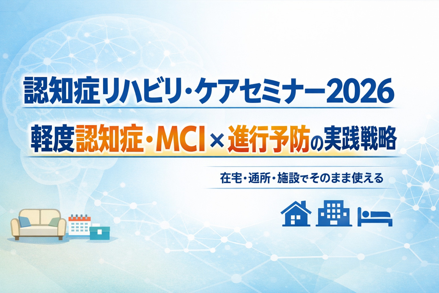 - 認知症リハビリ・ケアセミナー2026 〜軽度認知症・MCI×進行予防の実践戦略〜《症例別アプローチ動画付き》(14日間の見逃し配信付き)
